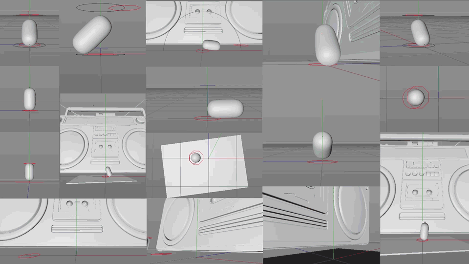 The design evolution of our 3D boombox model.